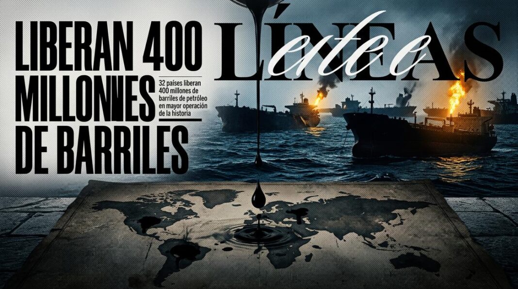 32 países industrializados se pusieron de acuerdo para liberar 400 millones de barriles de petróleo de sus reservas estratégicas. La cifra suena a cochinero de dinero, pero en realidad equivale a apenas cuatro días de consumo mundial. Como si te ofrecieran un vaso de agua cuando tu casa se está quemando. La Agencia Internacional de la Energía (AIE) anunció esta medida «sin precedentes» según BBC, pero el mercado petrolero respondió con una subida del 9% en el crudo Brent. Algo no cuadra.
